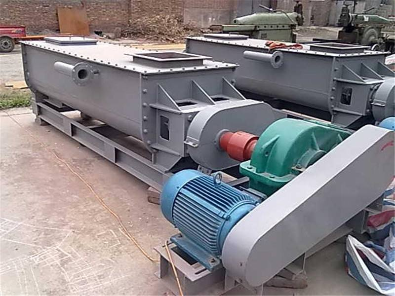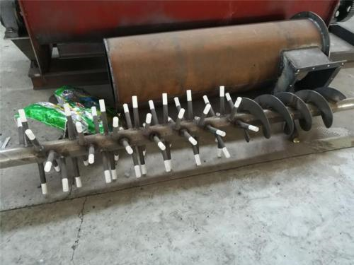 同時,還可在出料口料槽端部安裝一小段反旋向葉片,以防端部堵料。對進入粉塵加濕攪拌機的物料進行必要的清理,以防止大雜或纖維性雜質進入機內引起堵塞。