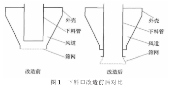 適當(dāng)增加下料口內(nèi)筒長度,使水泥不堵塞下料口風(fēng)道,料與風(fēng)互不影響。